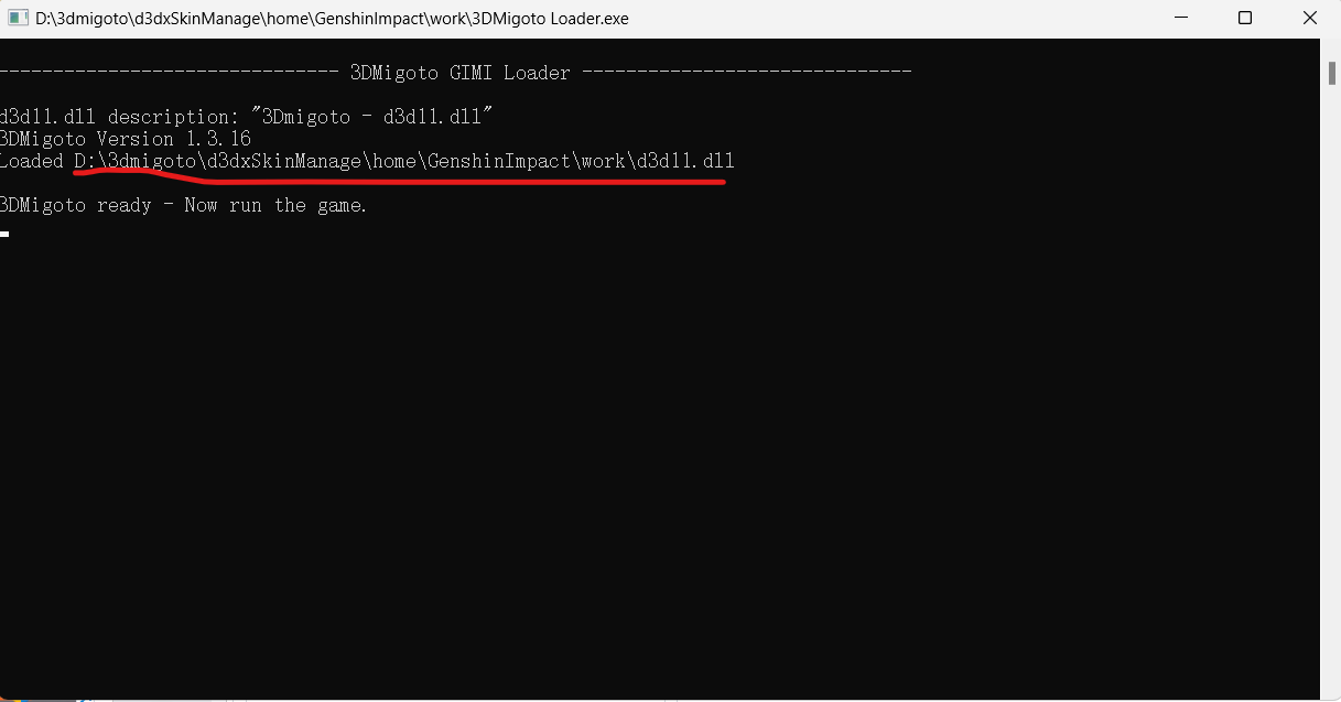备注:出现Now run the game 代表运行成功。如果没有出现dll位置,请在文件夹里找到d3dll.dll,并且通过属性复制所在位置。