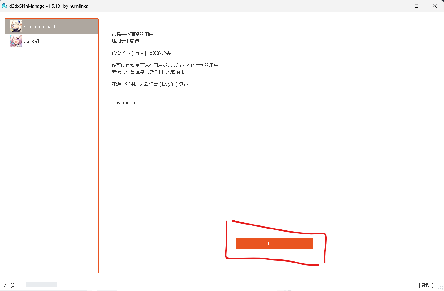 3.选择⚪神图标并且点击Login加载。