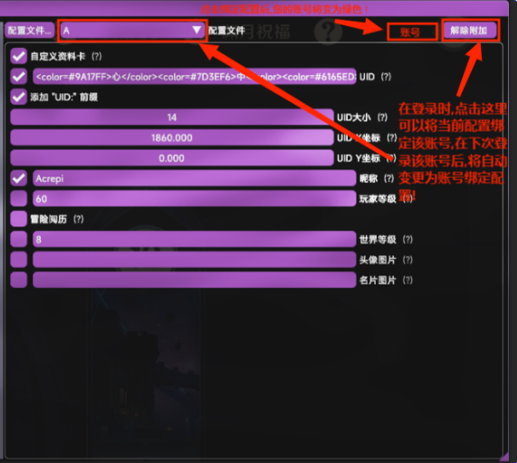 如果您不想每一次上号都进行一次切换配置,那么您可以对配置文件进行绑定